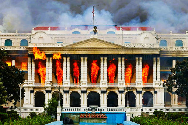 Soon Kathmandu was burning – Singha Durbar, i.e. Nepal’s administrative headquarters; the health ministry; the parliament building; the Supreme Court; the presidential palace; the prime minister’s residence, offices of the governing communist party, and the Kathmandu Hilton, were all set ablaze.