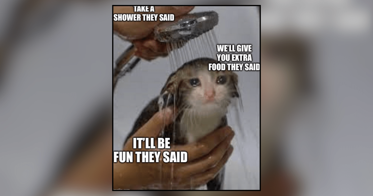 Cats and showers[1] are sworn enemies. Most cats treat water like it is lava, recoiling dramatically at a single splash. Suggest putting them in a shower and suddenly your sweet companion turns into a whirlwind of claws, determined to escape the soapy scene. For them, showers are not hygiene. They are horror movies starring you as the willing victim.