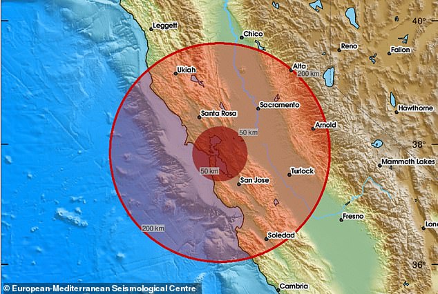 Trembling was reported in Berkeley, San Francisco, Santa Rosa, Oakland (pictured, Concord and Hayward