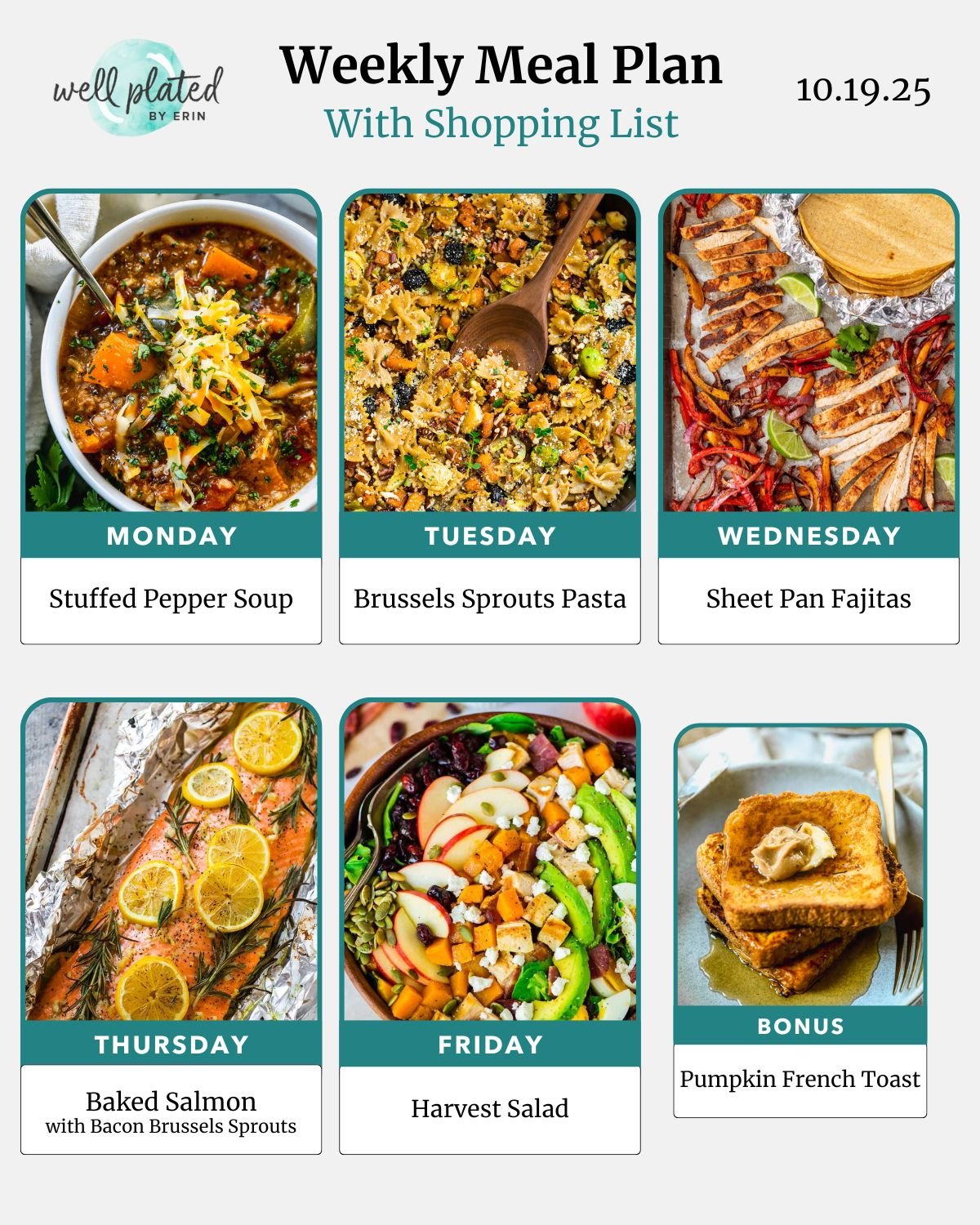 Yes! Our Weekly Meal Plans are created with a family of 4 in mind. To adjust this to fit the needs of your family, simply press the “+” or “-” symbols underneath each dish to adjust the servings amounts. Doing this will also automatically update your shopping list. You can also adjust serving amounts in the shopping list. For help with this, click here for tutorials[14]. Still stuck? Reach out to us at hello@wellplated.com[15].