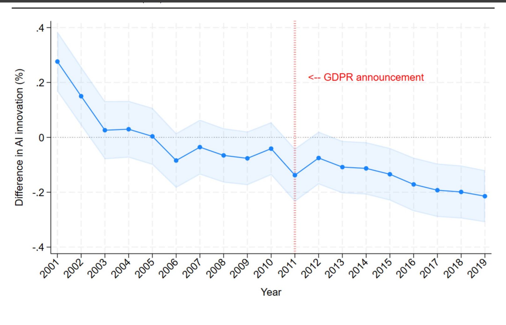 While the regulation unified Europe’s data protection standards, it also introduced new layers of bureaucracy. AI developers in Europe must secure explicit user consent, handle data deletion requests, and manage complex compliance structures, tasks that consume time and resources once devoted to experimentation. The study argues that these administrative demands, while essential for protecting citizens’ privacy, indirectly curb the pace of inventive work in data-driven fields such as machine learning and computer vision.