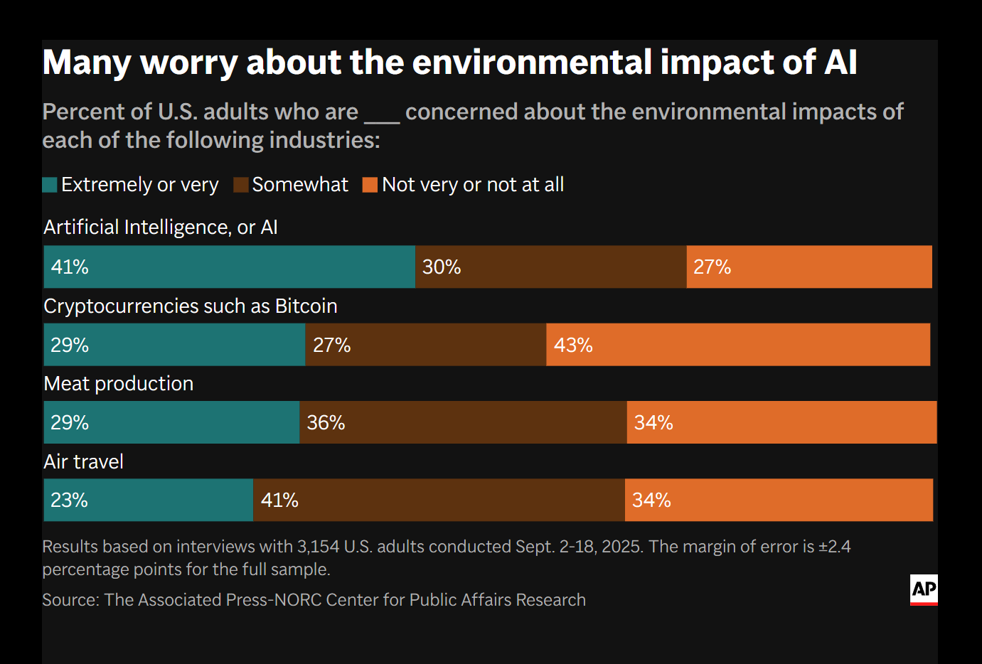 A recent[1] recent survey[2] signals that many Americans believe the environmental effects of this progress could easily outweigh gains in efficiency or convenience. Concerns about the energy footprint of AI technology have grown stronger than fears tied to several other industries that already carry reputations for contributing to climate change.