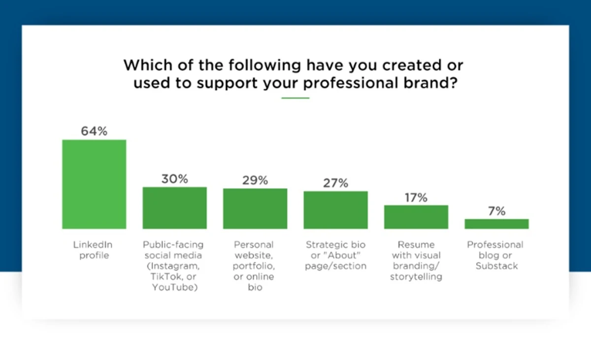 LinkedIn is the primary arena for personal branding online (64%). Professionals who ignore their digital presence may become less visible or misrepresented by outdated profiles. To this end, one in five reported having lost opportunities due to a misaligned online presence.